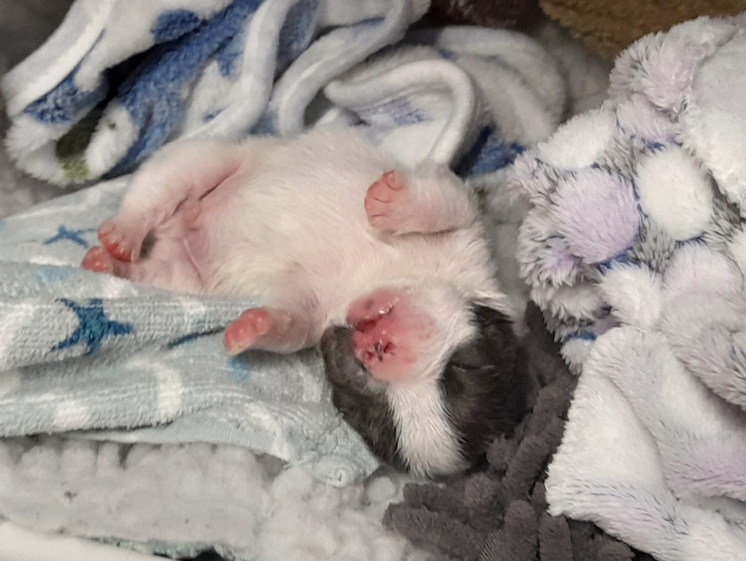In most cases, neonates that are failing to thrive require higher temperatures until their condition has stabilised and they start gaining weight. This is adjusted depending on how the individual is presenting. The highest temperature I have needed to increase my incubator was to 36°C. This was for some puppies that were severely underweight and suffering from sepsis (see picture below). It is something which requires careful monitoring and alteration to establish the temperature at which your puppy or kitten is comfortable and warm enough to digest food, yet not too warm that they risk overheating, which could lead to dehydration and potential organ failure.