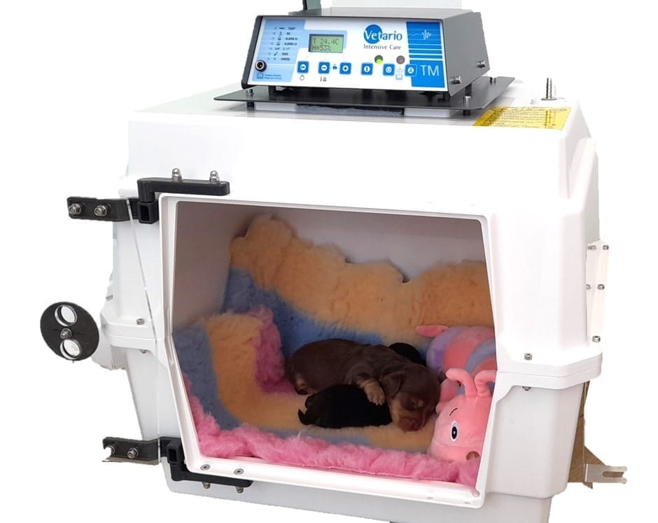 As for what temperature to set the incubator, 29-31°C is what is usually recommended. You can find temperature guidelines here. However, the truth is that environmental temperature requirements for puppies and kittens vary depending on their breed, health and body condition. As listed at the start of this blog, a litter of new-born puppies that have been born prematurely will definitely require higher environmental temperatures than standard recommendations. This is due to reduced body hair/fat and the fact they have poor CNS (central nervous system) development which helps in managing thermoregulation.